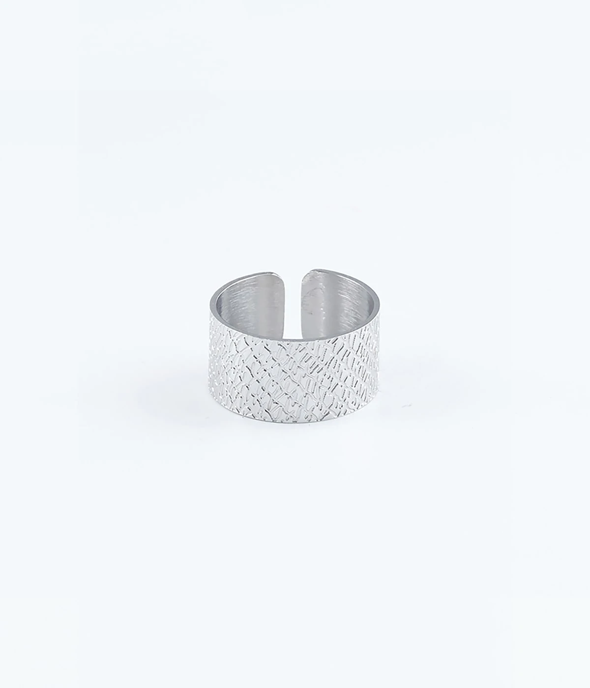 Bague jonc ajustable en acier uni ou dorĂ© Ă l’or fin dont la matiĂšre est finement texturĂ©e.