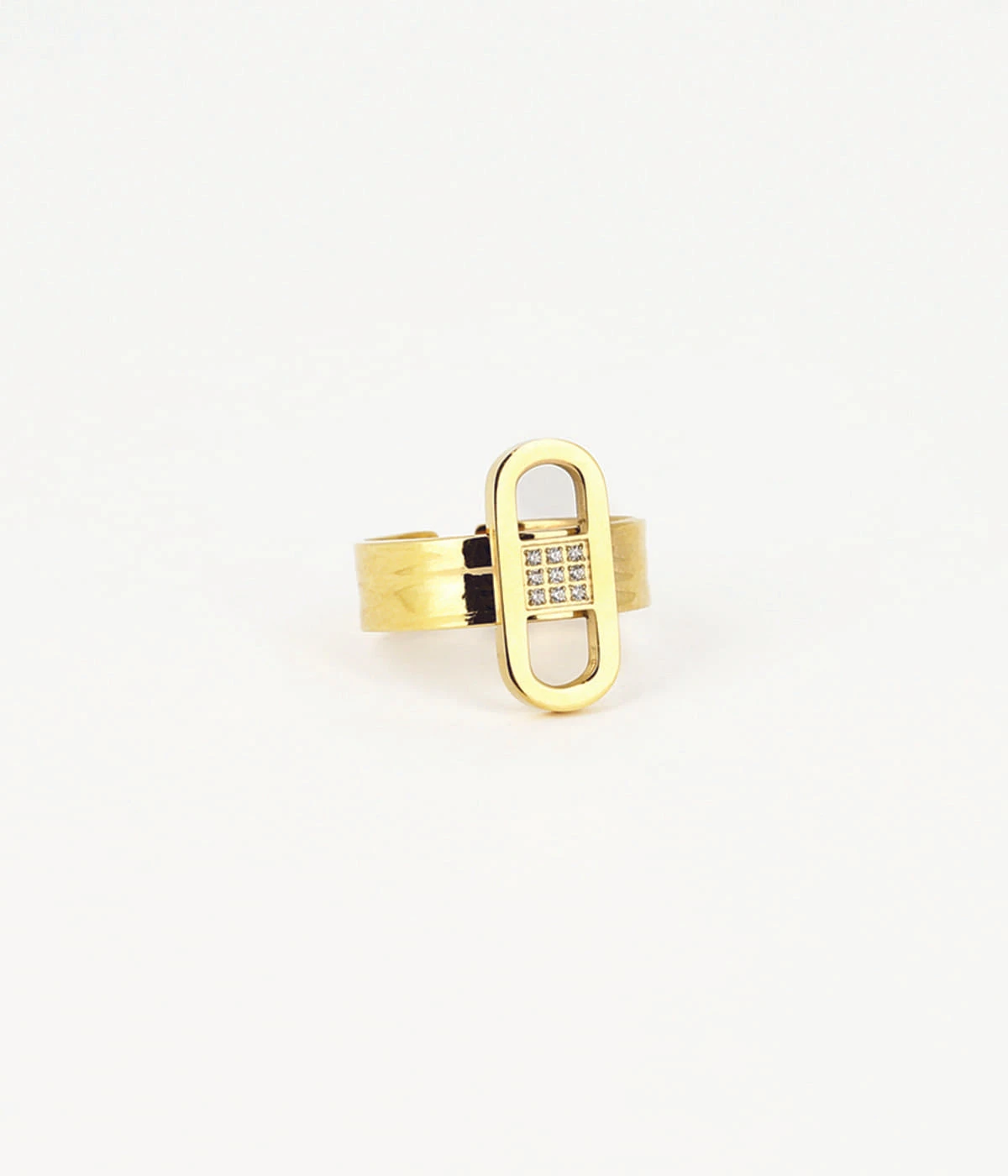Bague ajustable en acier uni ou doré à l’or fin représentant un maillon.
