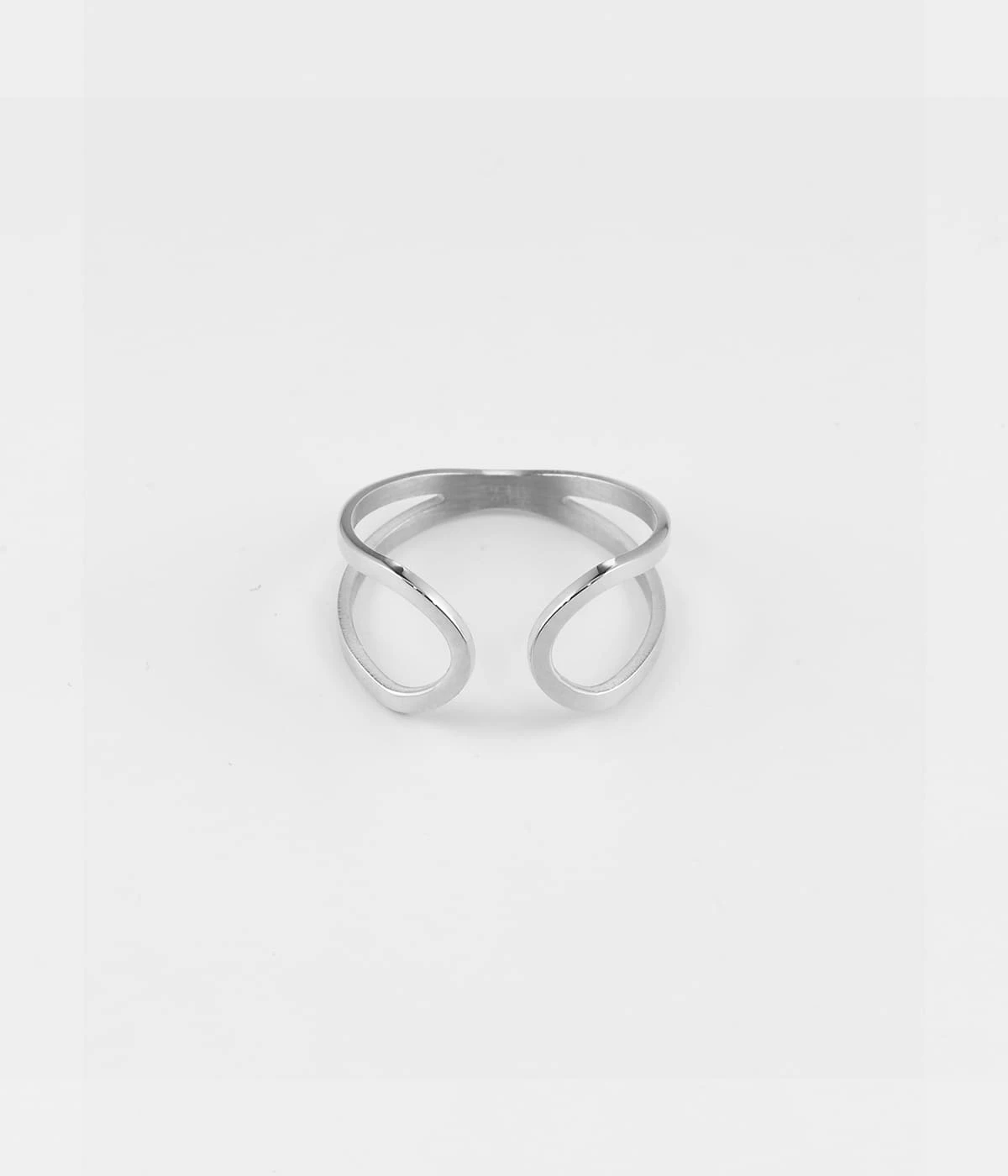 SimplicitĂ© absolue pour cette bague en acier uni ou dorĂ© Ă l’or fin dont le design ressemble au symbole de l’infini.