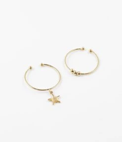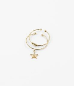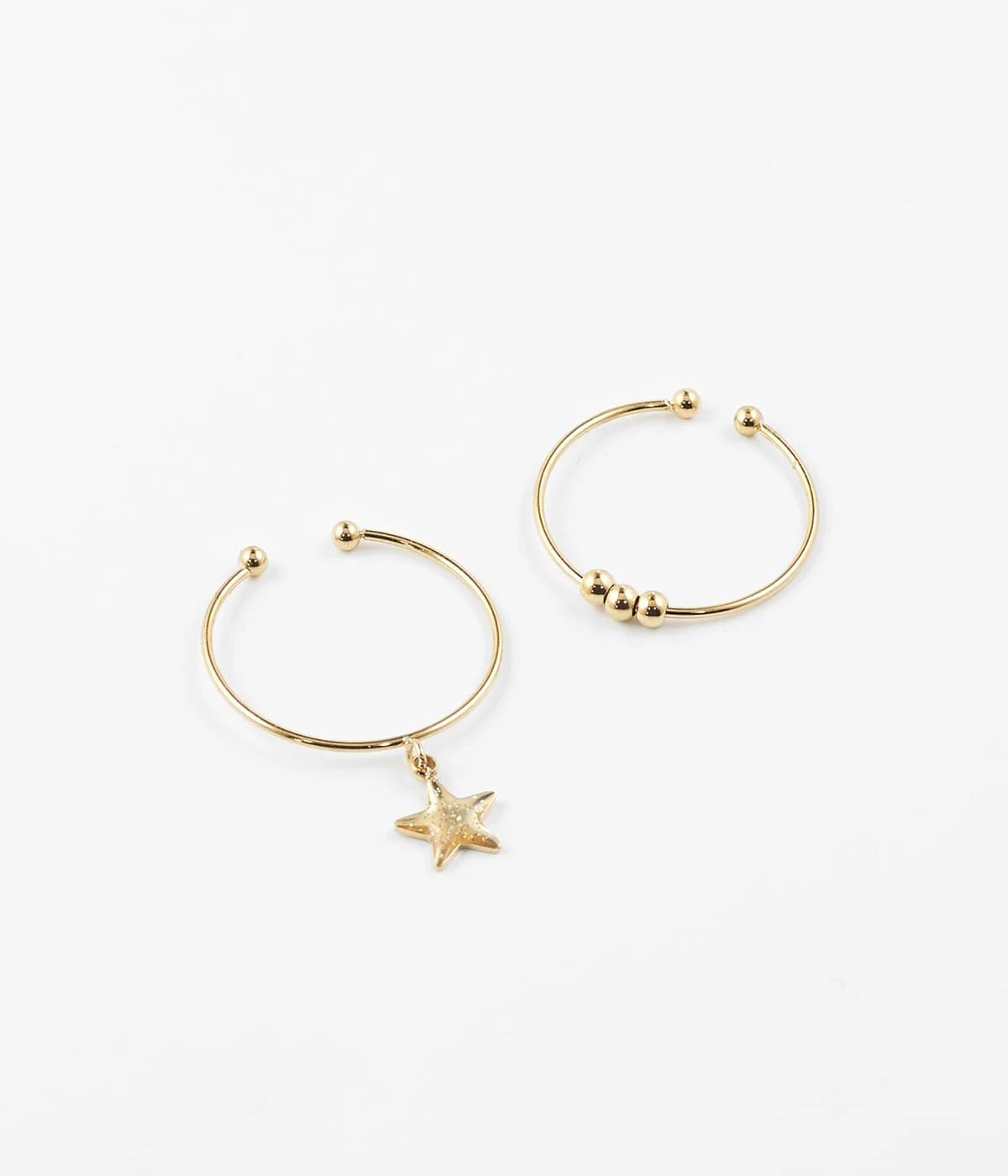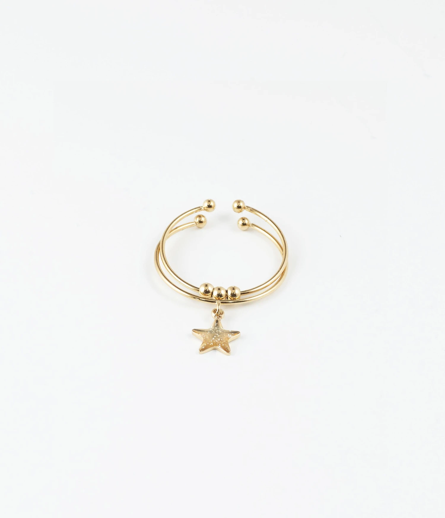Double anneau ajustable en acier uni et/ou dorĂ© Ă l’or fin. Le premier anneau est parsemĂ© de trois petites perles de mĂ©tal et le deuxiĂšme possĂšde une Ă©toile.