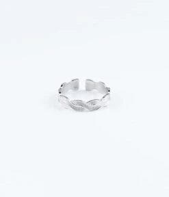 Bague jonc ajustable en acier uni ou dorĂ© Ă l’or fin. Le mĂ©tal est travaillĂ© comme une tresse plate finement gravĂ©e.