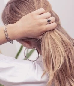 La bague est composĂ©e de cercles dont l’attention se porte sur le milieu qui est formĂ© d’une Ă©toile sertie en zirconium.