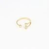 Bague ajustable en acier uni ou dorĂ© Ă l’or fin formĂ©e de deux anneaux rĂ©unis en leur centre par un ovale de nacre et un zirconium en serti clos.