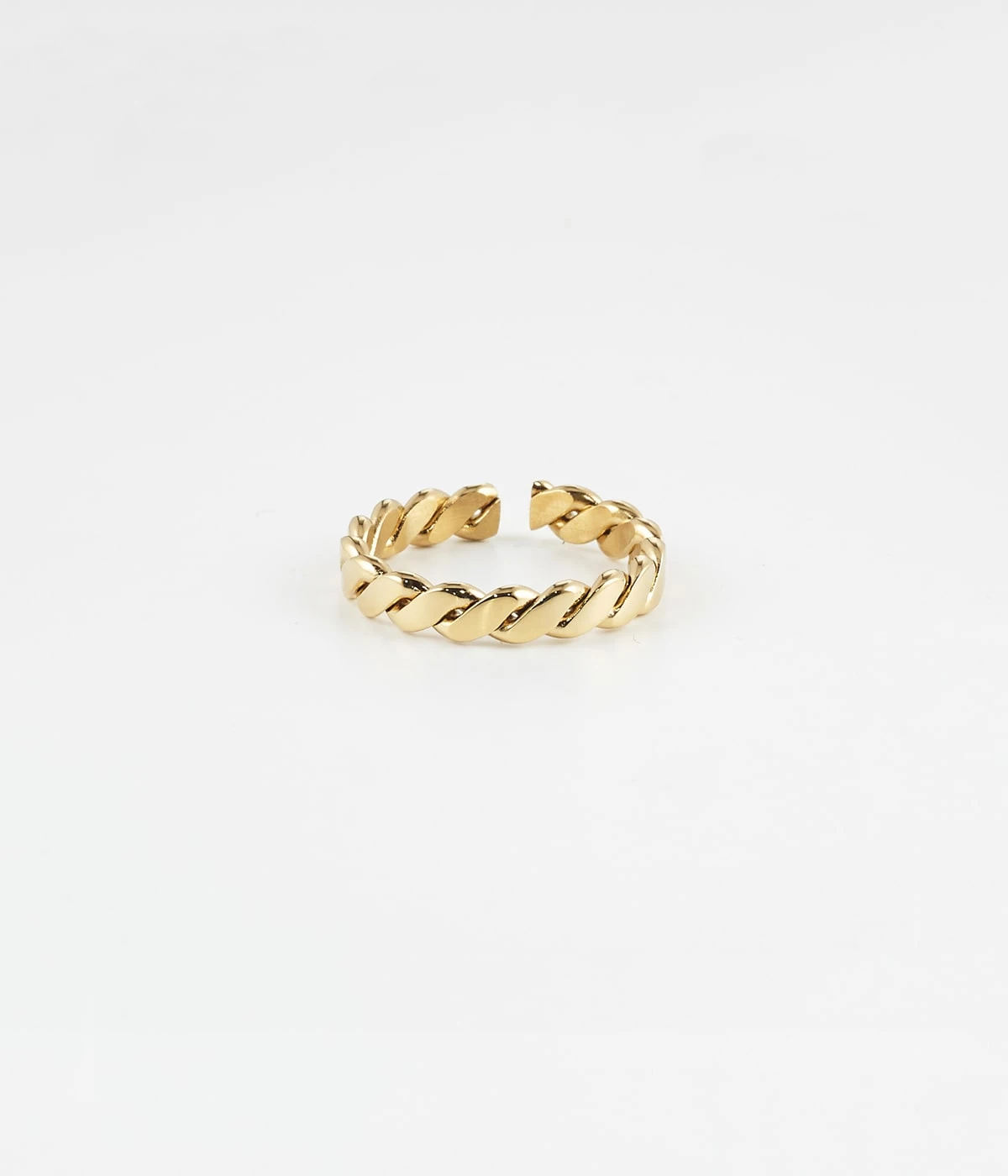 TrĂšs belle tresse d’acier uni ou dorĂ© Ă l’or fin pour cette bague ajustable.