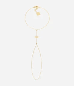 Bijou de main en acier dorĂ© Ă l’or fin sur lequel se trouvent une Ă©toile pavĂ©e de zirconiums et deux petits zirconiums.