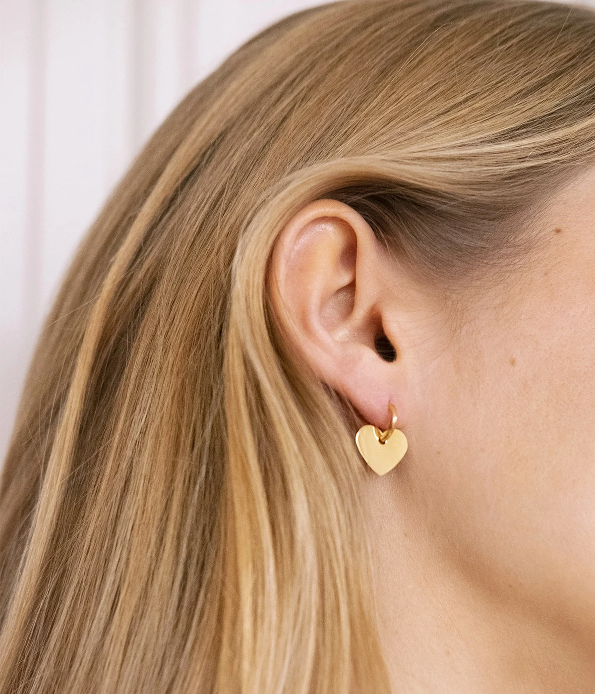Boucles d’oreilles crĂ©oles en acier uni ou dorĂ© Ă l’or fin sur lesquelles est suspendue une plaque en mĂ©tal en forme de cĹ“ur.