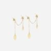 Boucles d’oreilles longues en acier uni ou dorĂ© Ă l’or fin constituĂ©es de fines guirlandes de mĂ©tal.