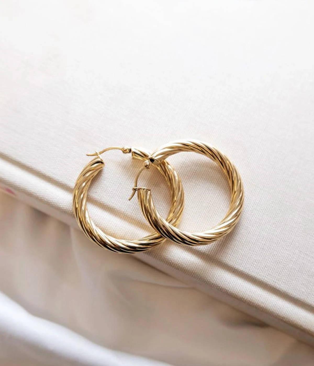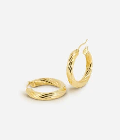 Boucles d’oreilles crĂ©oles en acier uni ou dorĂ© Ă l’or fin torsadĂ©.