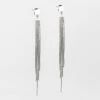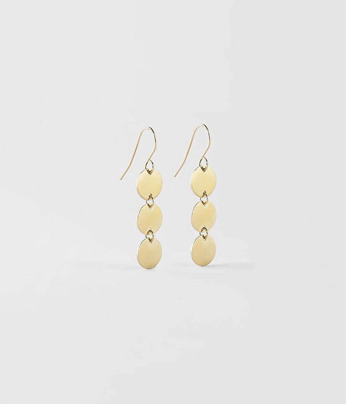 Boucles d’oreilles longues en acier uni ou dorĂ© Ă l’or fin formĂ©es de trois pastilles de mĂ©tal suspendues les unes aux autres.
