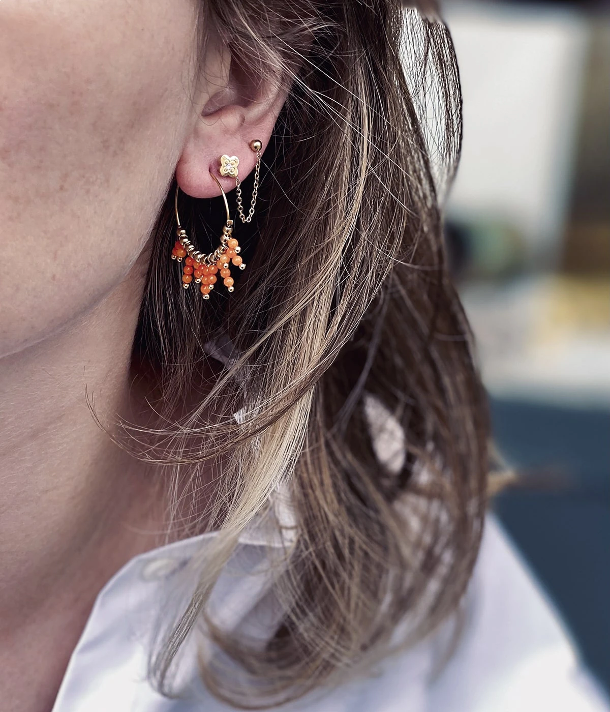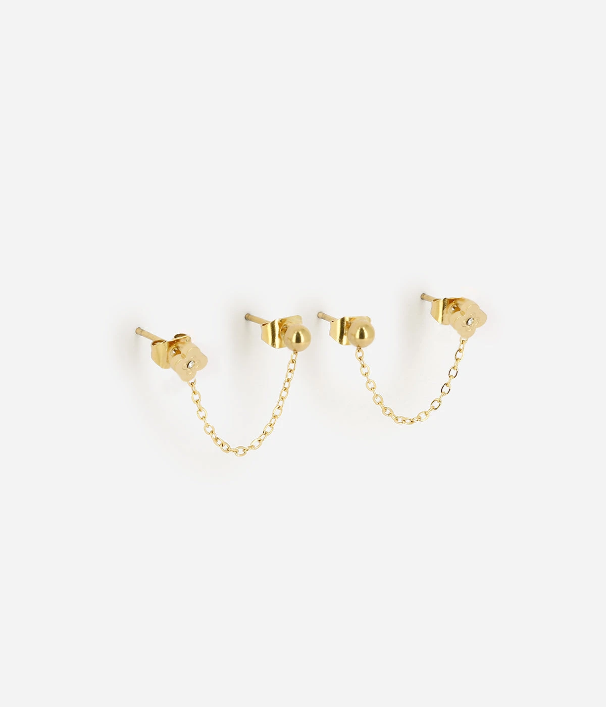 Boucles dâoreilles chaĂźnettes en acier uni ou dorĂ© Ă lâor fin pour celles qui ont plusieurs piercings.