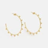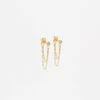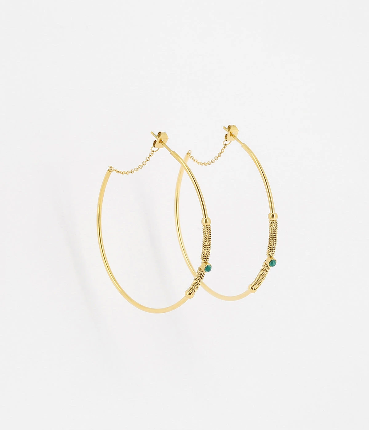 Boucles d’oreilles crĂ©oles en acier dorĂ© Ă l’or fin constituĂ©es d’une petite pierre naturelle. Une chaĂźnette relie le bout de la crĂ©ole au fermoir papillon.