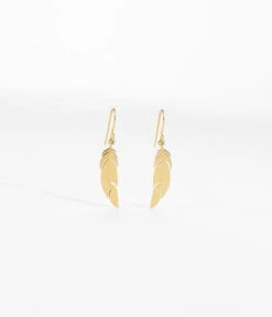 Boucles d’oreilles dormeuses en acier uni ou dorĂ© Ă l’or fin sur lequel est attachĂ© un motif de plume ciselĂ©.