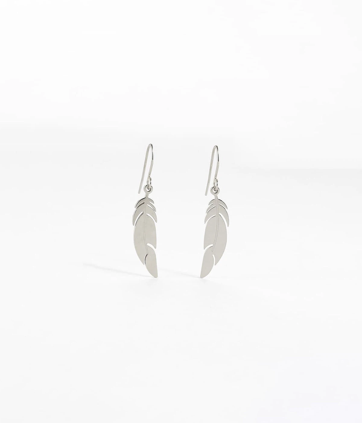 Boucles d’oreilles dormeuses en acier uni ou dorĂ© Ă l’or fin sur lequel est attachĂ© un motif de plume ciselĂ©.