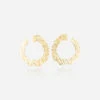 Boucles d’oreilles pendantes en acier dorĂ© Ă l’or fin, sur lesquelles est suspendu un anneau sur lequel sont attachĂ©s des zirconiums colorĂ©s.