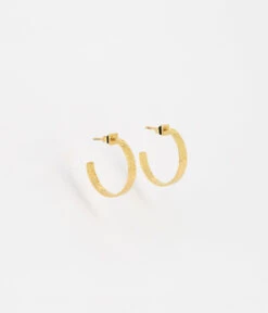 Boucles d’oreilles créoles en acier doré à l’or fin effet martelé.