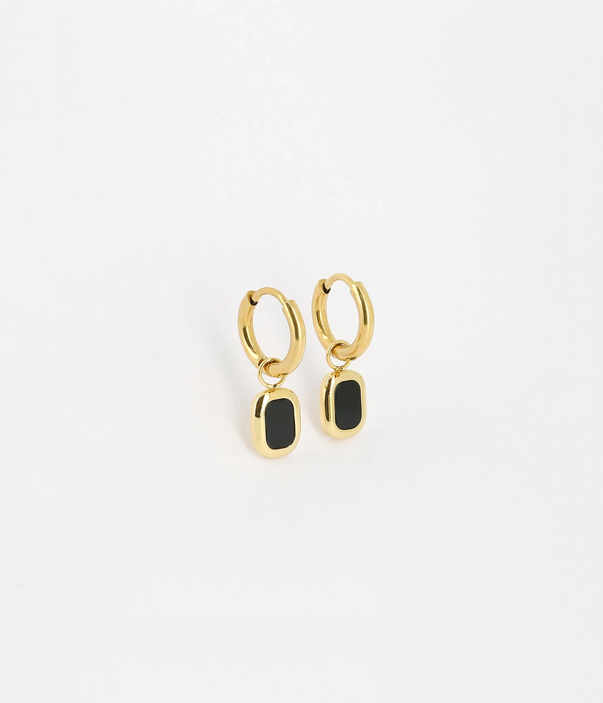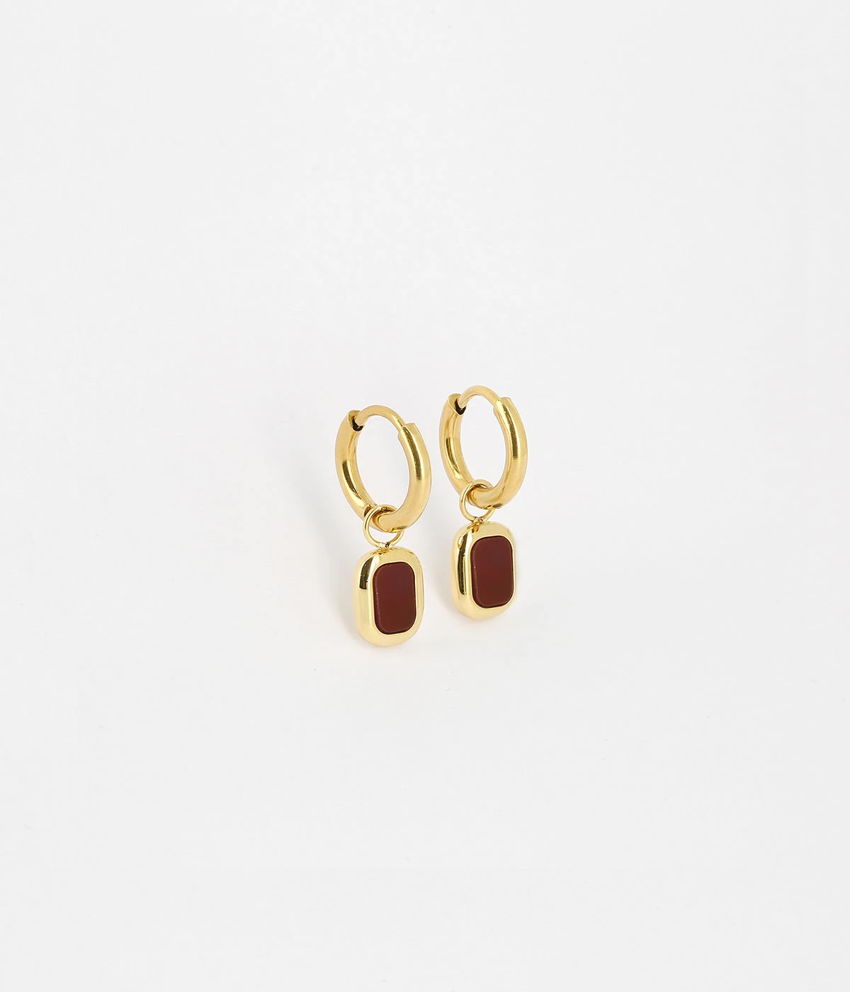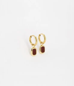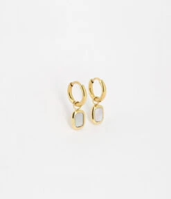 Boucles dâoreilles en acier dorĂ© Ă l’or fin sur lesquelles est attachĂ©e une pierre naturelle
