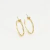 Boucles d’oreilles martelĂ©es en acier dorĂ© Ă l’or fin Ă triple rangĂ©e. Sur deux des rangĂ©es se trouvent des zirconiums colorĂ©s qui apportent de l’Ă©clat au bijou.
