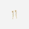 Boucles d’oreilles en acier dorĂ© Ă l’or fin asymĂ©triques pendantes, serties de zirconiums avec une rose des vents.