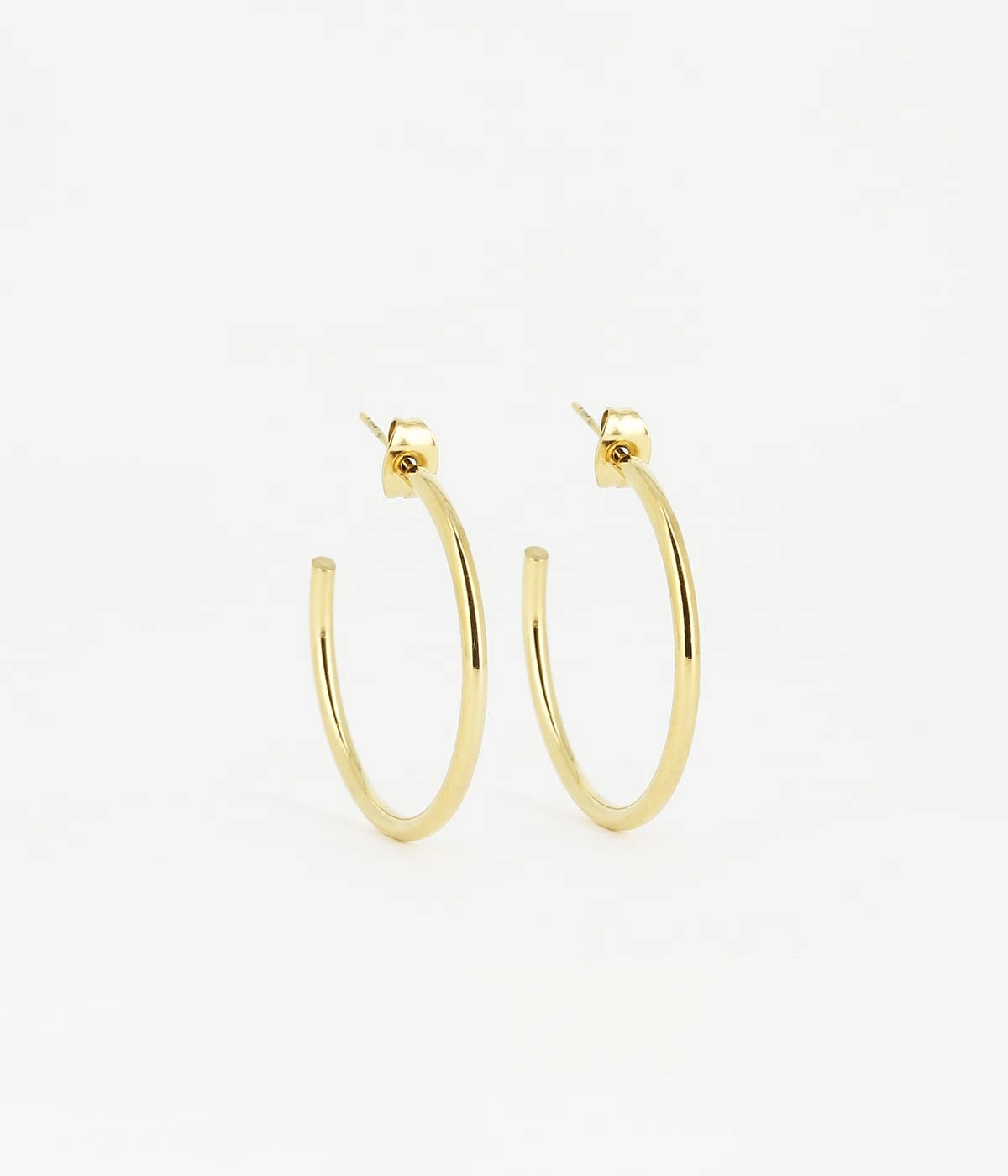 Boucles dâoreilles crĂ©oles en acier uni ou dorĂ© Ă lâor fin.