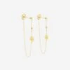 Boucles dâoreilles en acier dorĂ© Ă lâor fin sur lesquelles sont marquĂ©s des motifs aux inspirations maya.