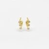 Boucles d’oreilles en acier uni ou dorĂ© Ă l’or fin serties de zirconiums brillants. Les boucles se placent comme un demi-cercle sur le lobe de lâoreille dans une allure fine et joaillĂšre.