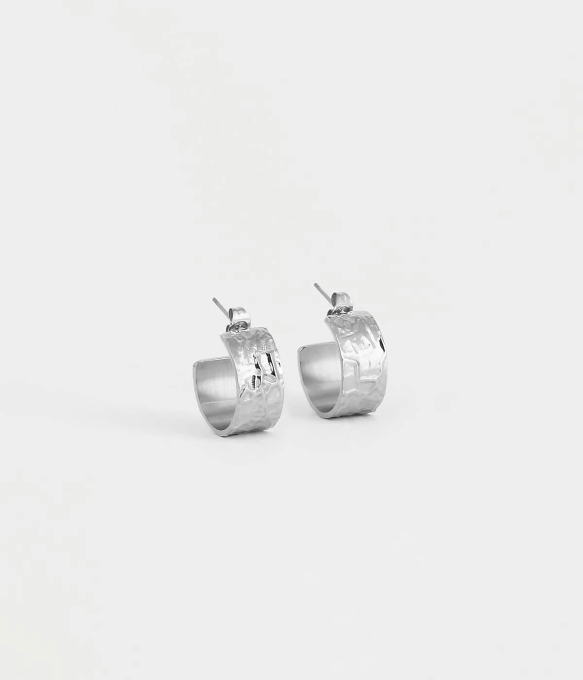 Boucles d’oreilles crĂ©oles en acier uni ou dorĂ© Ă l’or fin dont la matière est finement texturĂ©e.