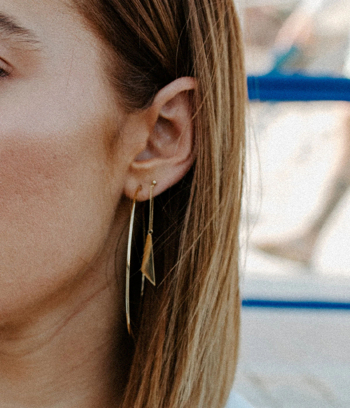 Boucles d’oreilles en acier uni ou dorĂ© Ă l’or fin sur lesquelles une forme gĂ©omĂ©trique est reliĂ©e Ă la base et au fermoir papillon.