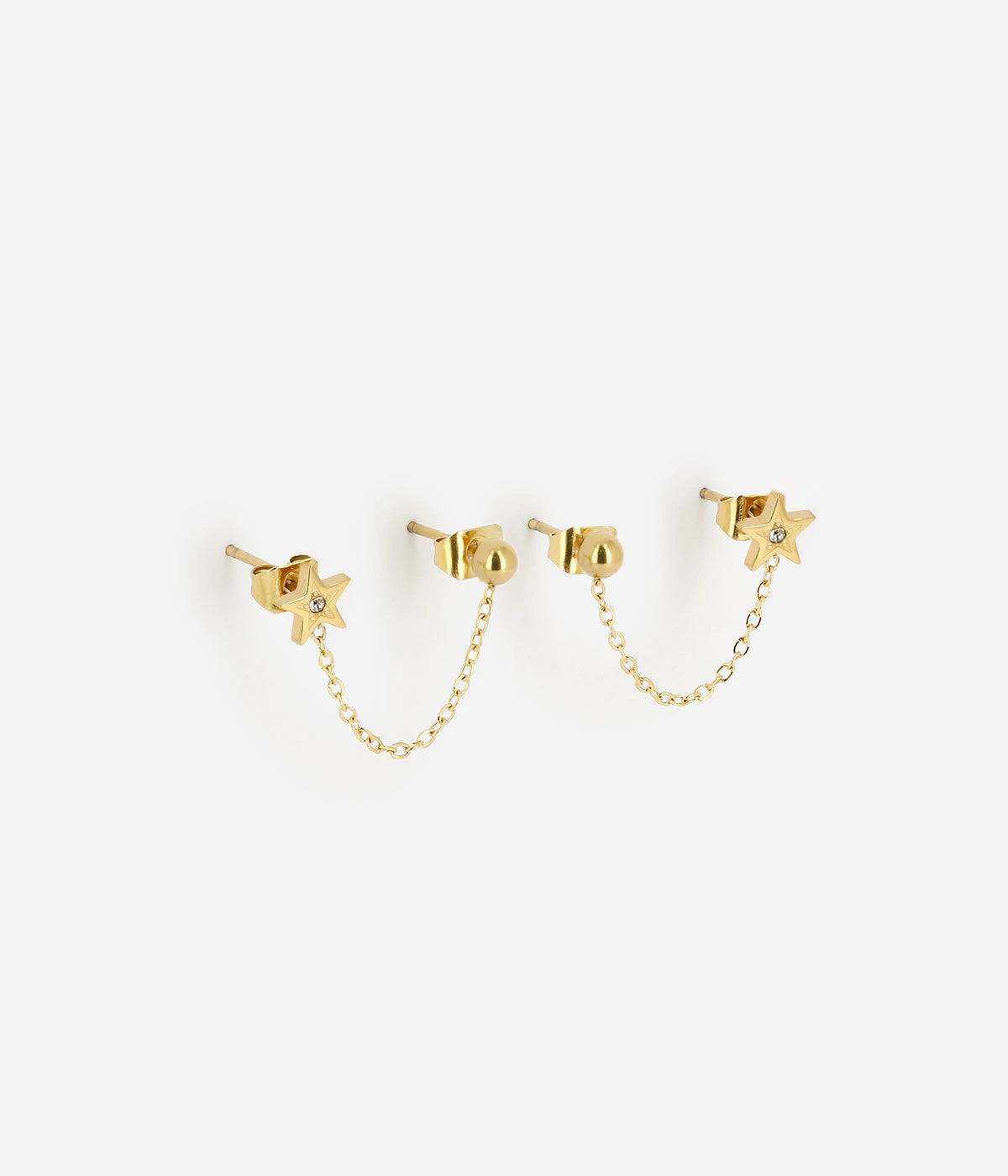 Boucles dâoreilles chaĂźnettes en acier uni ou dorĂ© Ă lâor fin pour celles qui ont plusieurs piercings.