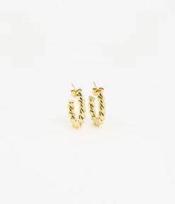 Boucles d’oreilles crĂ©oles en acier uni ou dorĂ© Ă l’or fin imitant une forme torsadĂ©e.
