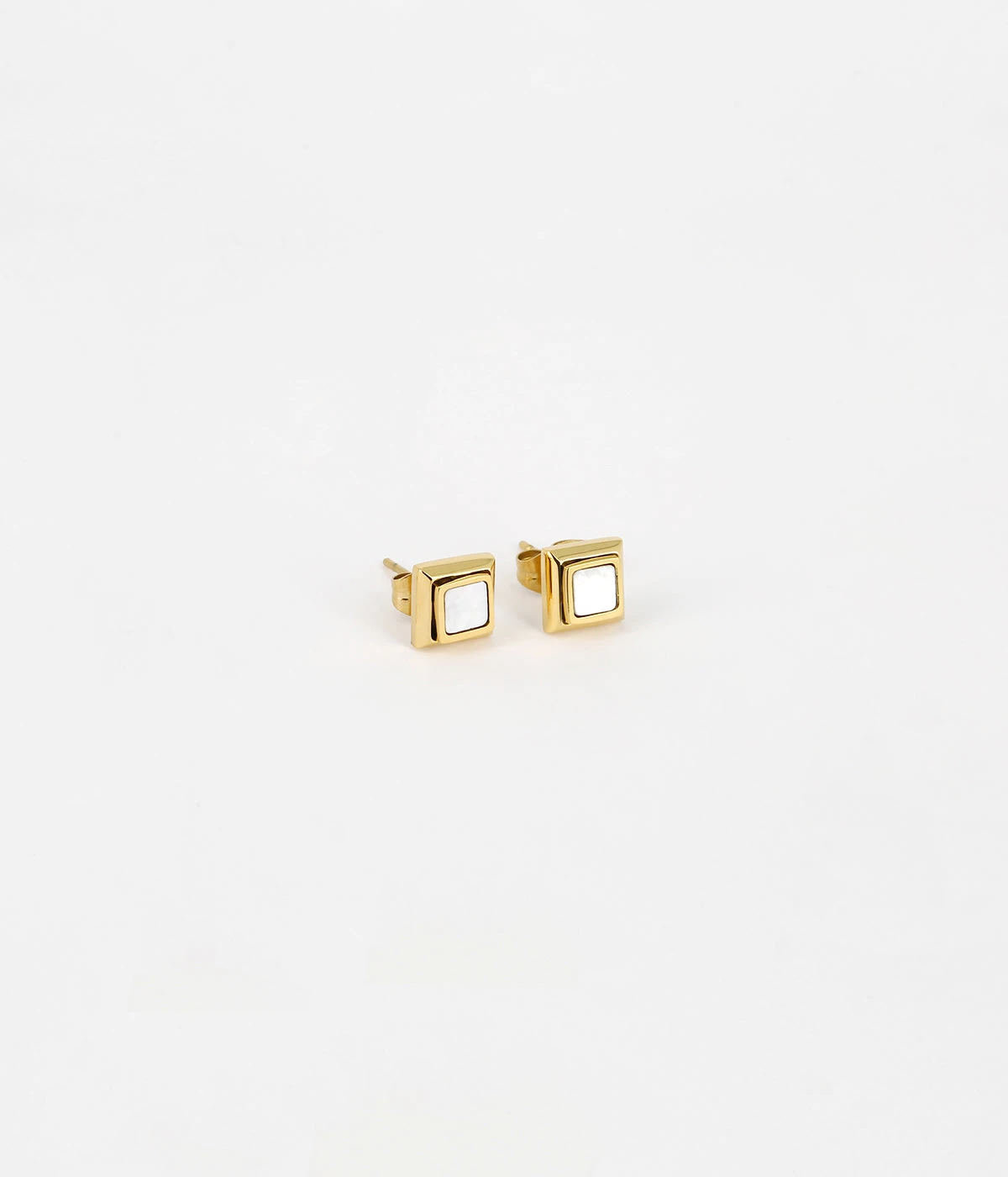 Boucles d’oreilles en acier uni ou dorĂ© Ă l’or fin sur lequel une forme carrĂ©e et colorĂ©e est attachĂ©e.
