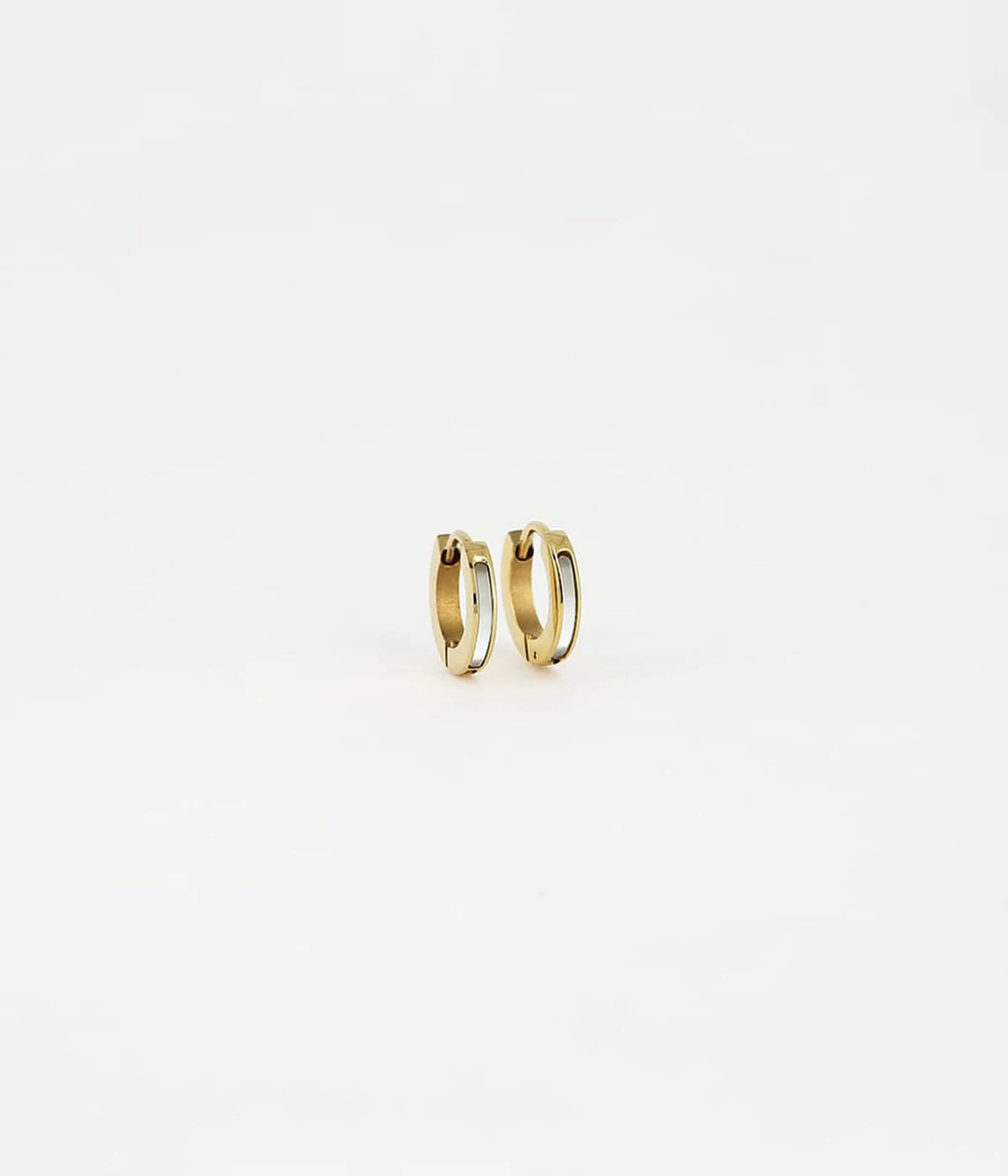 Boucles d’oreilles mini crĂ©oles en acier uni ou dorĂ© Ă l’or fin.