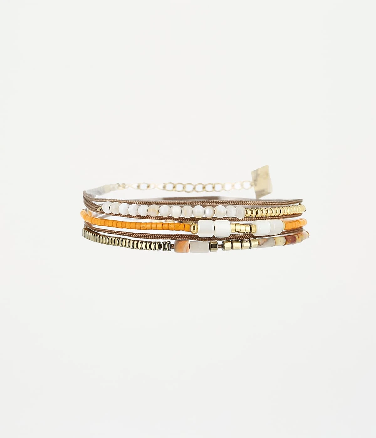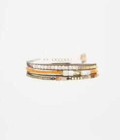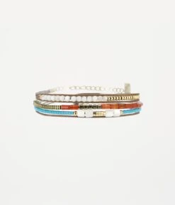 Les couleurs chatoyantes de ce bracelet ressortent sur un poignet bronzé. À mélanger avec d’autres pièces de nos collections.