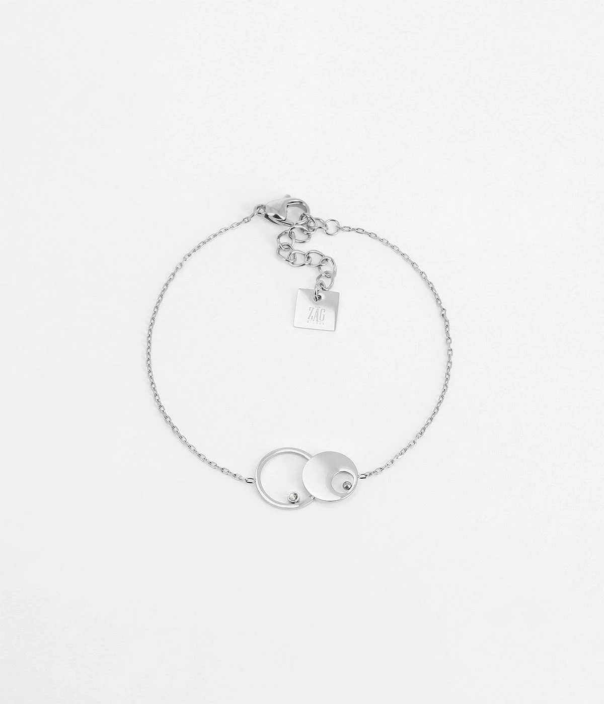 Bracelet en acier uni ou dorĂ© Ă l’or fin sur lequel deux cercles sont attachĂ©s.