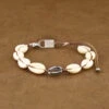 Bracelet ajustable sur lequel sont enfilĂ©s des boules d’acier ainsi que des maillons.