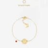 Bracelet en acier uni ou doré sur lequel sont attachées des médailles de métal comme des petits confettis.