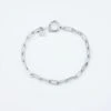 Bracelet maillons en acier uni sur lequel sont attachĂ©s des maillons dont un est colorĂ©, et l’autre serti de zirconiums.