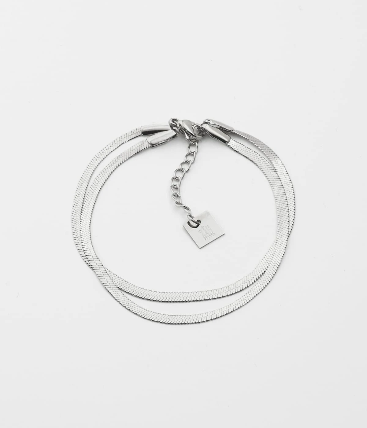Bracelet double chaĂźne « serpent » en acier uni ou dorĂ© Ă l’or fin.