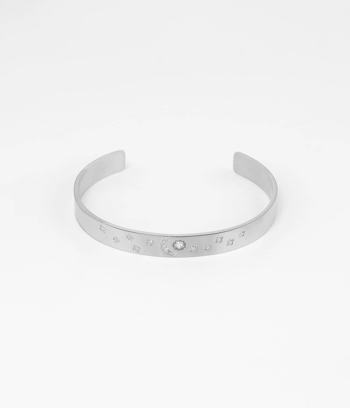 Bracelet jonc ajustable en acier uni ou dorĂ© Ă lâor fin serti de petits zirconiums en forme dâĂ©toiles.