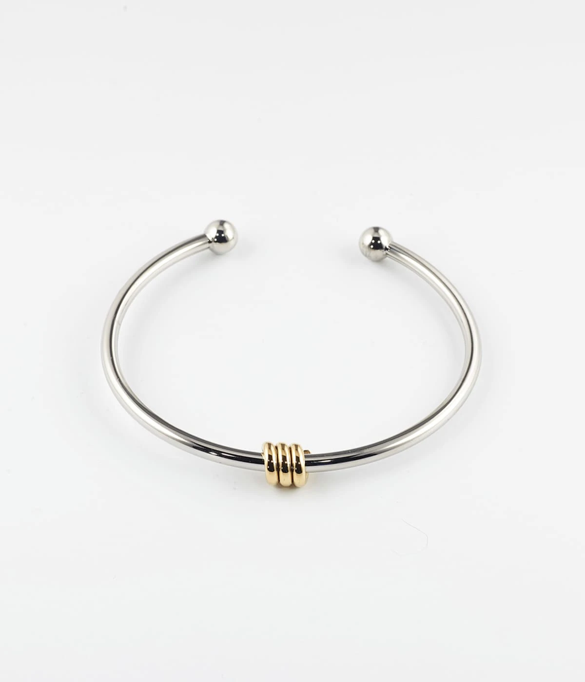 Bracelet jonc en acier uni ou dorĂ© Ă l’or fin agrĂ©mentĂ© en son centre d’une torsade de mĂ©tal dorĂ©e.