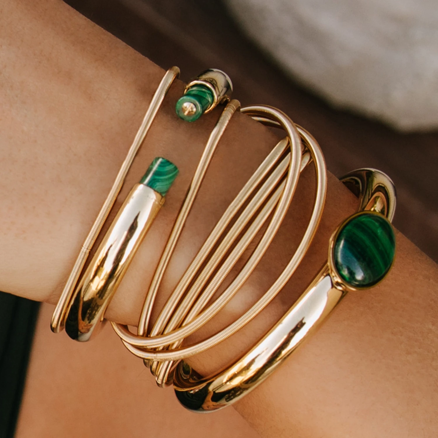 Bracelet jonc en acier dorĂ© Ă l’or fin avec aux extrĂ©mitĂ©s des pierres naturelles.