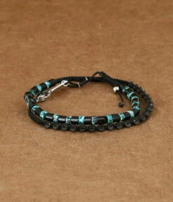 Bracelet qui s’enroule deux fois autour du poignet, sur lequel sont enfilĂ©es des pierres colorĂ©es. Ce bracelet a beaucoup de fraĂźcheur et est trĂšs tendance.