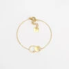 Bracelet en acier dorĂ© Ă l’or fin sur lequel deux coeurs sont attachĂ©s. L’un des deux est colorĂ© et serti d’un petit zirconium.