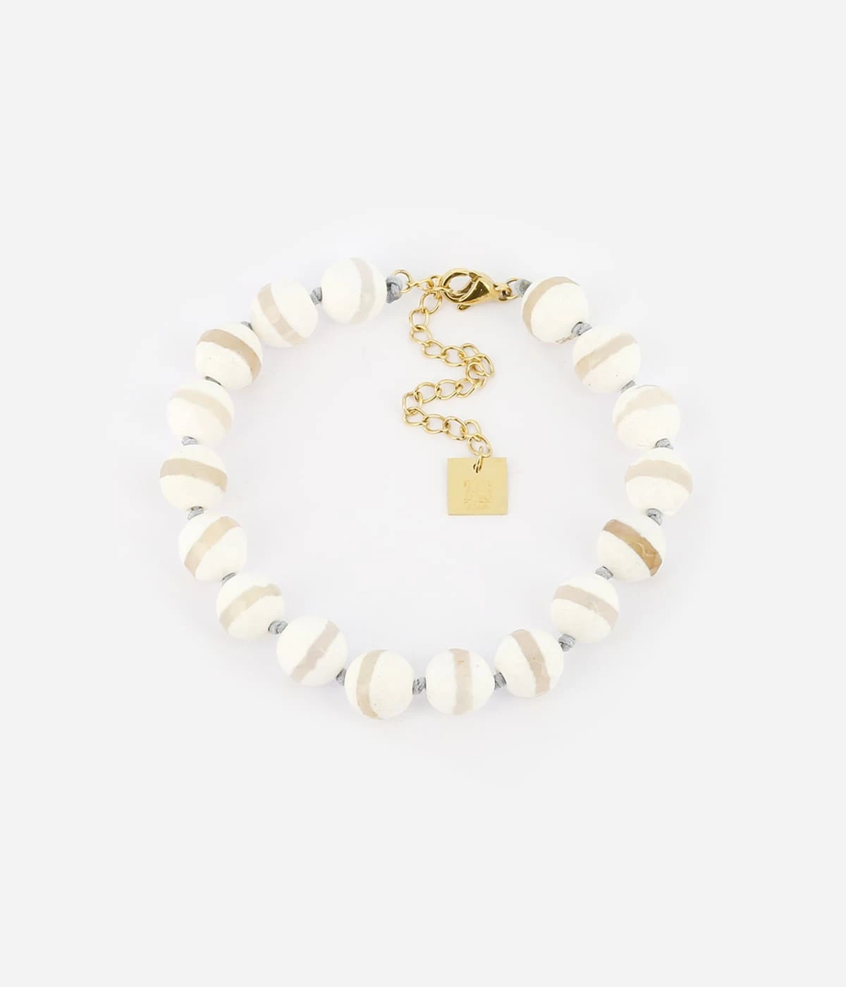Bracelet en coton naturel sur lequel sont enfilés des pierres fines.