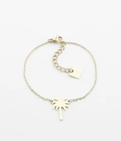 Bracelet chaĂźnette en acier uni ou dorĂ© Ă l’or fin. Un magnifique palmier se dĂ©ploie au milieu de la chaĂźne nous rappelant ceux de Californie.