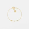 Bracelet chaĂźne en acier uni ou dorĂ© Ă lâor fin sur lequel sont attachĂ©es des petits rondelles de mĂ©tal.