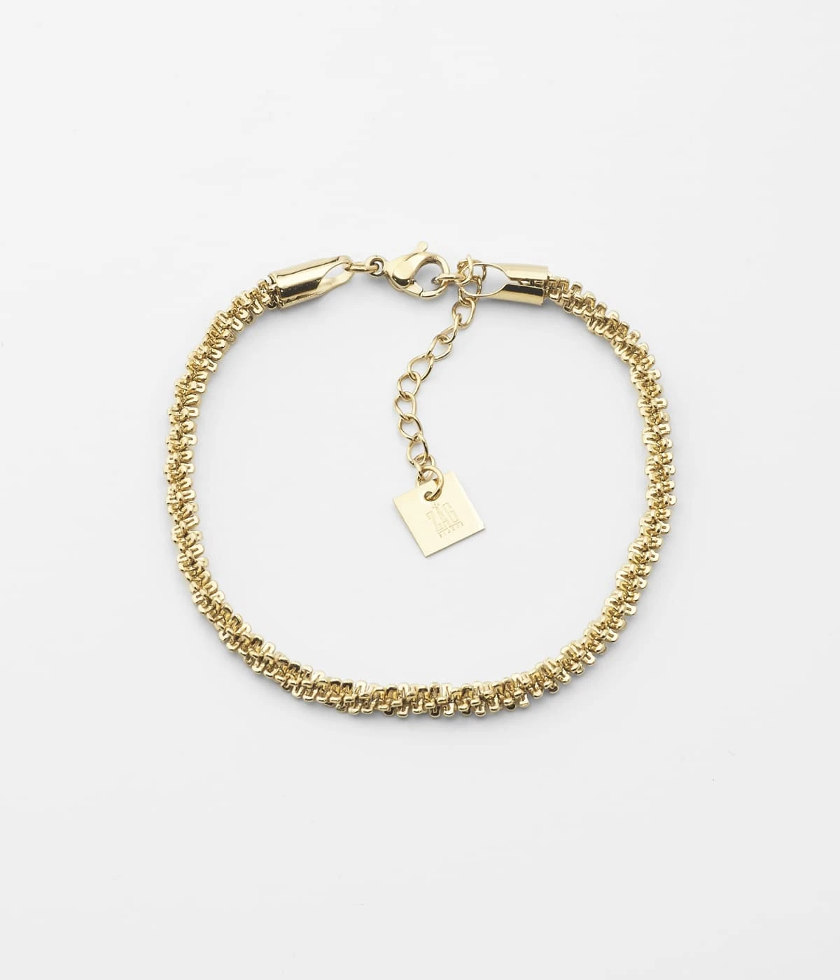 Bracelet chaĂźne en acier uni ou dorĂ© Ă l’or fin Ă effet grains de riz trĂšs organique.