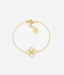 Bracelet en acier uni ou dorĂ© Ă l’or fin dont la piĂšce principale est sertie de zirconiums.