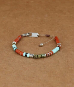 Bracelet ajustable sur lequel des rondelles colorées et en acier sont enfilées.