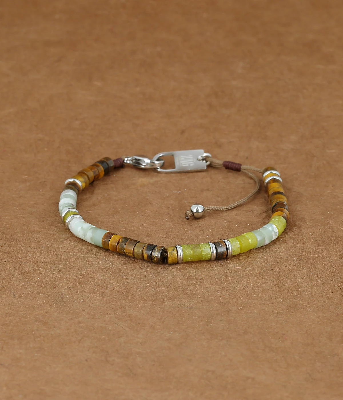 TrĂšs colorĂ© sur le poignet, nous conseillons de le porter accumulĂ© avec d’autres bracelets de notre collection pour homme.