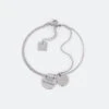 Bracelet triple chaĂźne en acier uni ou dorĂ© Ă l’or fin sur laquelle sont accrochĂ©es une Ă©toile et une pastille de mĂ©tal.